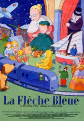 La Flèche bleue est un film de 1996. L’aspect se veut doux, décors peints à l’aquarelle. L’introduction pose le décor, pour saisir l’intrigue et bien entrer dans l’histoire, il faut saisir cette introduction, elle est plutôt rapide. Durant le film, des séquences montrent les jouets qui se mettent à bouger et parler. On suit en parallèle Scarafoni, Francesco le jeune orphelin, deux enfants riches ou des voleurs. Un rêve mélange Francesco et les jouets.